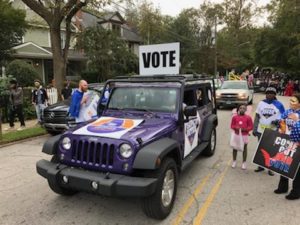 Our Super Voter Team rounded out October by marching in the Little 5 Points Halloween Parade and handing out over 500 endorsed candidate fliers along the parade route. Many parade participants were proudly wearing their ‘I’m a Georgia Voter’ stickers.